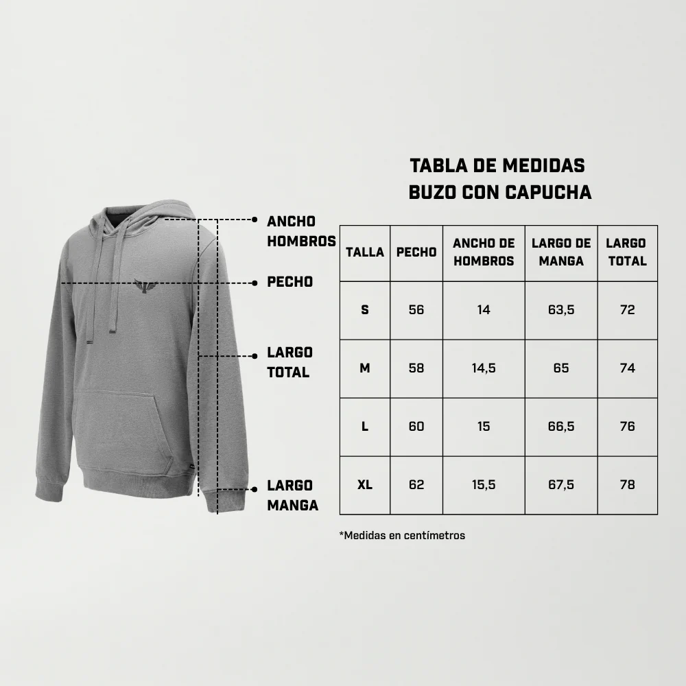 Confeccionado en French Terry, compuesto por 60% algodón y 40% poliéster, este buzo regula la temperatura sin generar sudoraciones excesivas. El interior retiene el calor justo, mientras que el exterior conserva la forma, ofreciendo una prenda suave al contacto y firme en estructura.