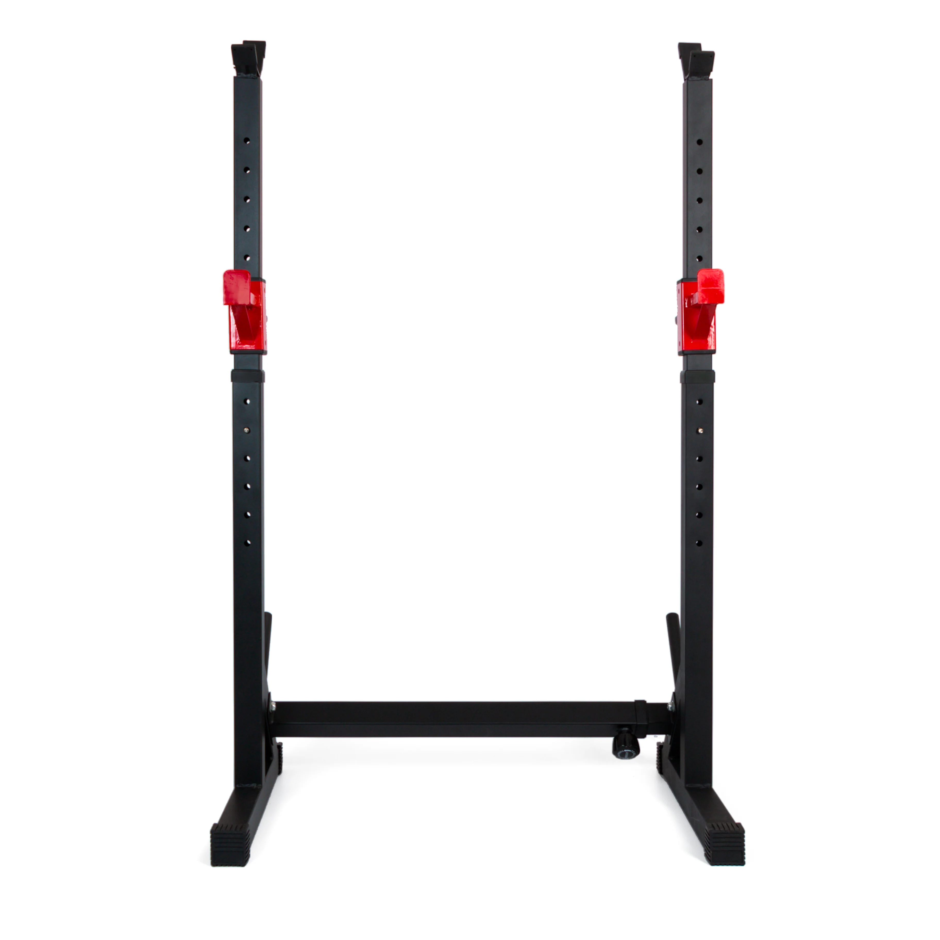 Construido con montantes de acero de alta resistencia, este squat rack ofrece durabilidad y estabilidad en cada repetición. Su base reforzada con placas triangulares atornilladas evita movimientos no deseados, permitiendo un entrenamiento con máxima seguridad incluso con cargas pesadas.